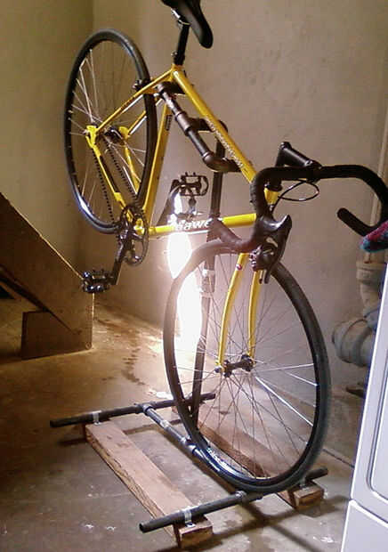 he sido un mecánico de bicicletas profesional durante 14 años y aunque un soporte profesional es bueno, simplemente no podía justificar el costo, así que construí uno mismo.  He utilizado 3/4" tubo de gas.  No sólo es un soporte muy robusto, pero rom