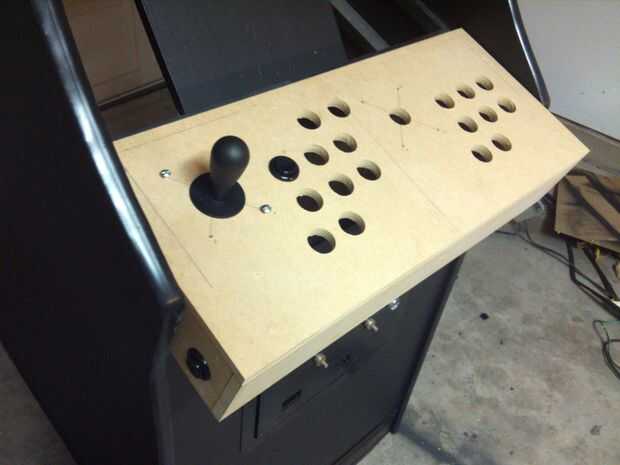 Después de crear tu mazo de cartas tienes que diseño los botones. Fui con 2 joysticks y el diseño del botón 8. Con el espacio adicional de la modificación tenía habitación con dos botones de "flipper", así que vinieron en muy útil más adelante. Para una máquina moderna de dos jugadores no recomiendo nada menos de 20 botones total.