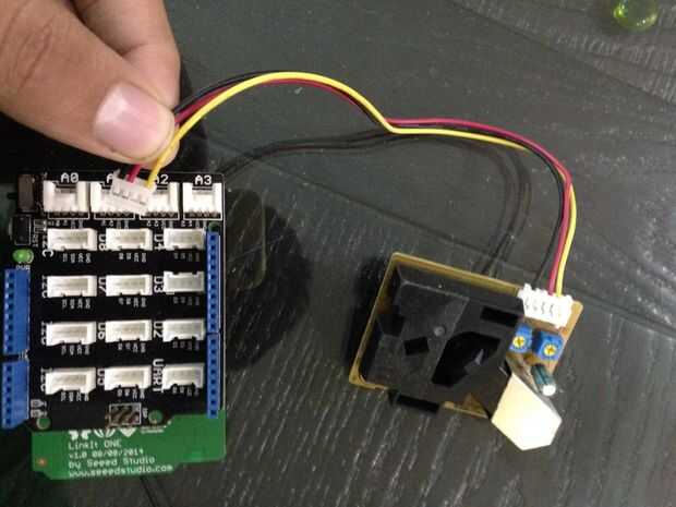 Estaremos usando el pin digital 8 del linkit para la comunicación, así que conectar el sensor de polvo a eso perno.
