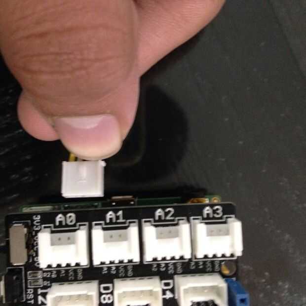 Primero de todo, ponga el escudo base grove en su LinkitONE cuidadosamente. Compruebe si los pernos están colocados correctamente. Si se hace, entonces conecte el sensor.