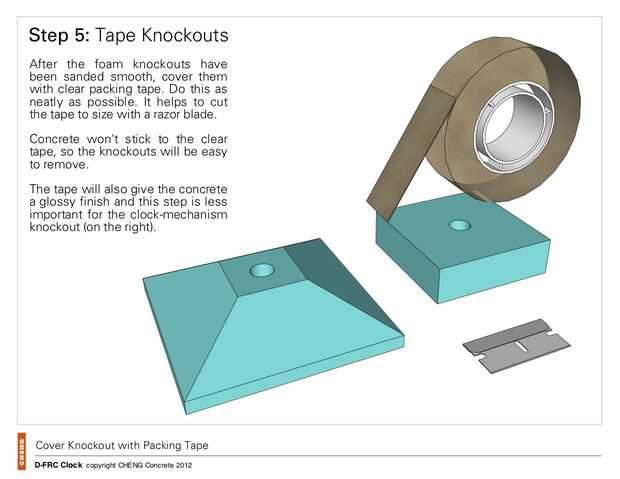 Cubrir las tapas con cinta de embalaje transparente, ajuste en caso necesario con un cuchillo afilado, estar siempre tan limpia como sea posible. La cinta de embalaje hará más fácil retirar las piezas desmontables y le dará un acabado brillante. Puede omitir este paso, pero el acabado será ligeramente áspero como la espuma.