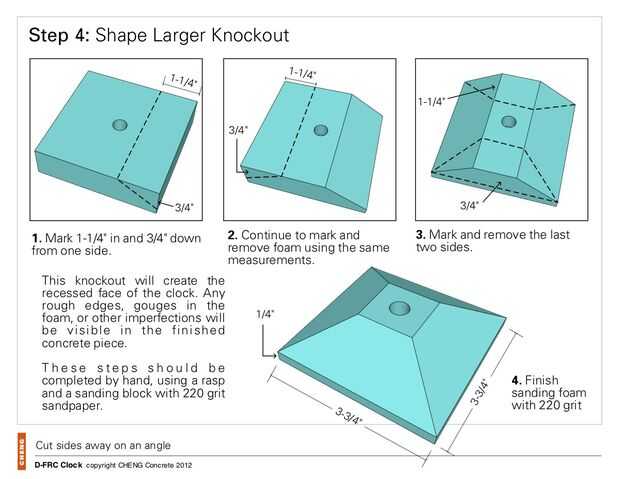 Dibujar líneas de guía en la gran eliminatoria para saber donde retirar material. Poco a poco cortar y lijar la espuma, hasta llegar cerca de la forma acabada. Medir continuamente, ser precisos y no abollará ni raye la espuma. Se mostrará cualquier imperfección en el concreto, así que tómate tu tiempo.