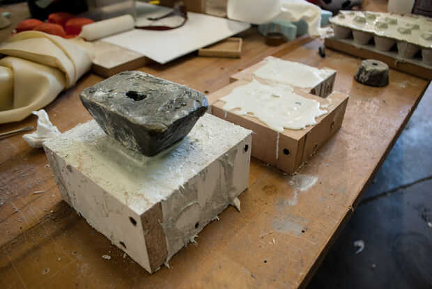 4. forma de vibrar para eliminar las burbujas de aire. Suavemente levante un lado y colóquelo en la mesa de fundición repetidamente o utilice un vibrador de la tabla. Eliminar las burbujas de aire en la superficie y asegurarse de que el formulario se llena en la parte superior.