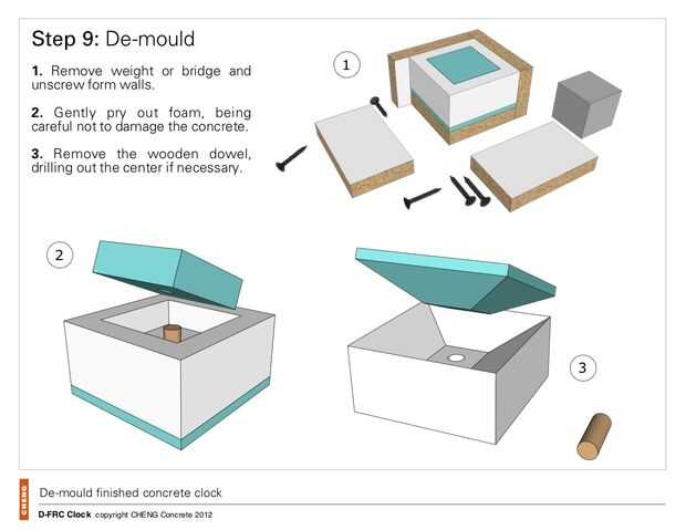 1. desenroscar forma paredes y retire la pieza de hormigón.