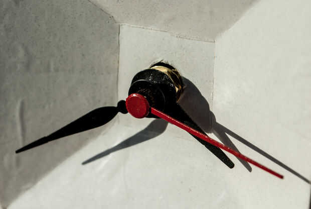 3. remodelar, pintar y las agujas del reloj en un ángulo de la curva para que no toquen la cara del reloj.