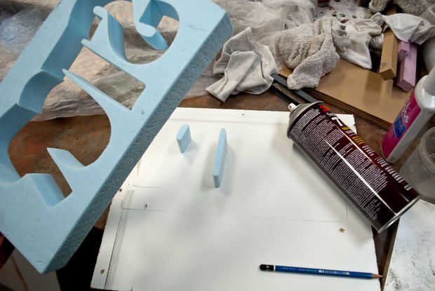 - Aerosol a un lado de la espuma con adhesivo en aerosol, sostenga por lo menos 12" de la espuma pues el aerosol puede derretir la espuma. También se puede utilizar sellador de silicona, que proporcionará un mejor sellado contra sangrar hacia fuera, pero toma unas horas para curar.