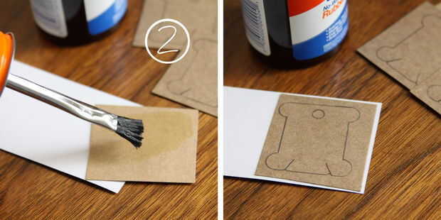Afix utilizando el cemento de goma (o cualquier otro adhesivo que tienes ahí) su corte con el trazo de su hacia fuera. Esto ayuda a sabe donde cortar. Asegúrese de que usted deje que el pegamento seca completamente antes de proceder al siguiente paso.