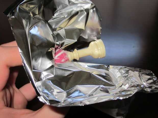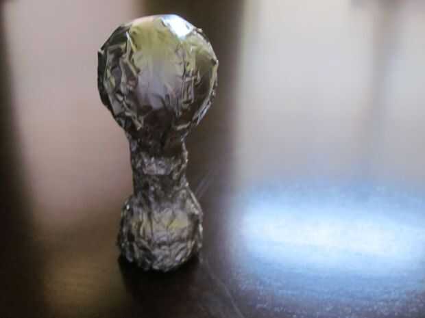Cortar un cuadrado de lata papel aproximadamente 8 "x 8" y para envolver cómodamente alrededor de la pieza que a montado. Trate de mantener tanto la forma original de la pieza como sea posible. Asegúrese de cubrir el fondo de la pieza de ajedrez así y tratar de mantener tan plano como sea posible