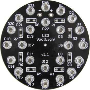 Ahora debe instalar y soldar en los LEDs D1, D2, D4, D5, D7, D9, D10, D11, D13, D15, D16, D18, D20, D21, D23 y D23. Al instalar los LEDs, intentar mantenerlos plana contra el tablero.