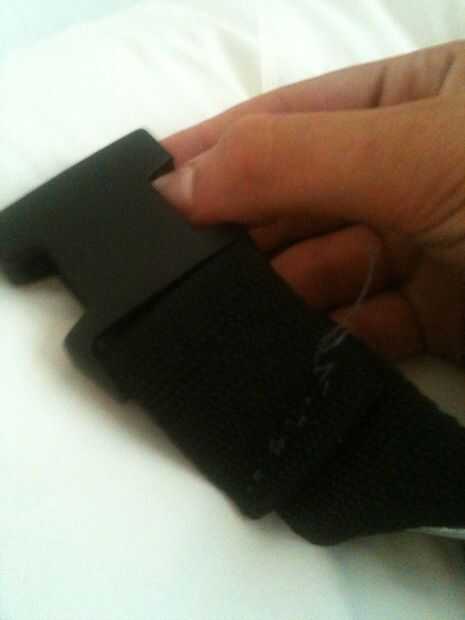Pase la correa de nylon a través de la hebilla hembra y con seguridad con tu hilo y aguja, ajuste su hebilla a la correa