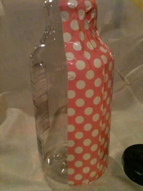 Será conducto cinta sobre dos lados, dejando un espacio entre cada una de las etiquetas. En primer lugar, conducto de cinta desde la parte inferior al cuello de la botella, que abarca la etiqueta del frente. A ambos lados de la región con cinta del conducto, saltar sobre un área clara de aproximadamente 2 pulgadas. Por último, cinta aislante sobre la etiqueta trasera con los hechos de la nutrición.