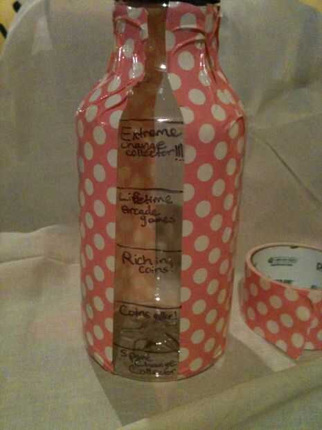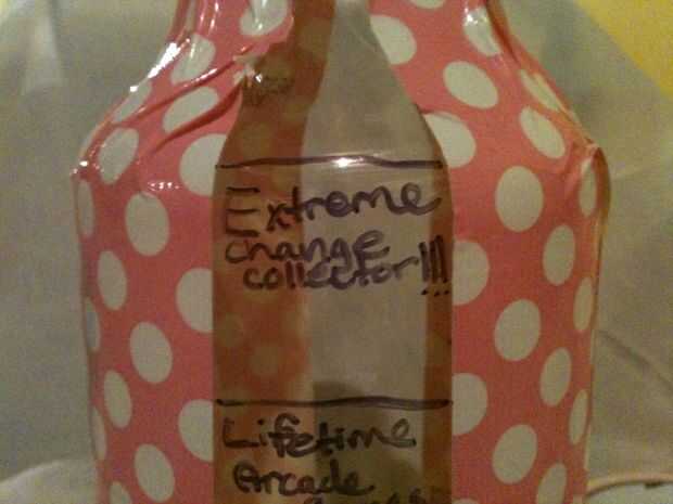En cualquier área claro que desea, marque líneas arriba y abajo de la jarra a mostrar signos de progresión en la recogida de su dinero. Mina divididos en 5 categorías y marcados en el siguiente orden de abajo a arriba: repuesto cambio coleccionista, monedas Gallore, rico en monedas, juegos de Arcade de toda la vida y extremas coleccionista de cambio. Usted puede venir para arriba con todo tipo de títulos alentadoras o refranes en cada categoría para la que recoge emocionantes!
