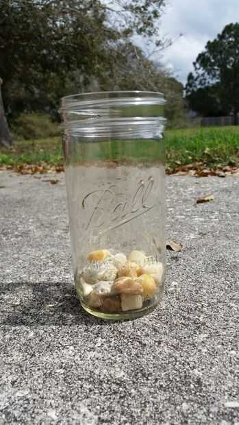 Tarro de masón luces es bastante comunes, pero generalmente en una configuración donde se cuelgan en una posición vertical. Tuve una idea para crear una instalación de iluminación en una zona más oscura del patio de mi edificio de condominio, y en mi