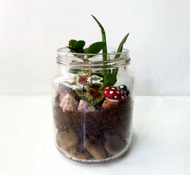 Lo mejor de este jardín de tarro de Masón es los suministros que necesita para que sea cerca a mano. Utilice un viejo tarro de masón, recoger las rocas, mezcla de suelo y las plantas y hacen uno!