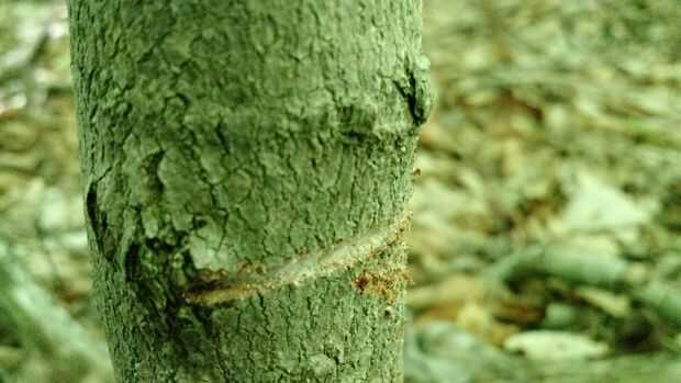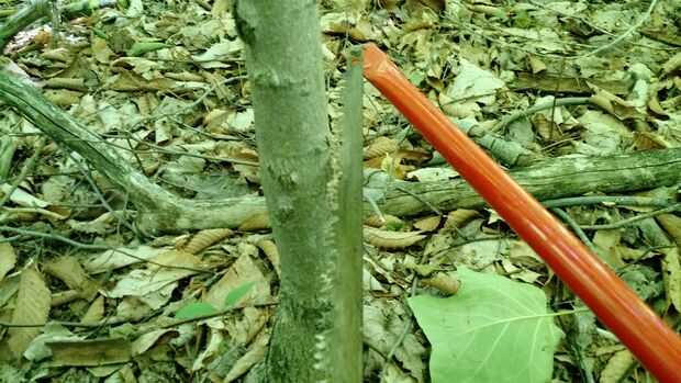 Salir en el bosque y encuentra un árbol recto alto utilizar. En la base debe ser de alrededor de 1" y 1-1/2". Si encuentras un árbol muerto que es incluso mejor porque tu no corte un árbol inocente pobre, pero por desgracia para mí allí era no hay árboles muertos, tomé a todos.