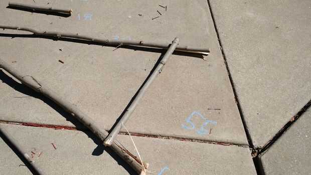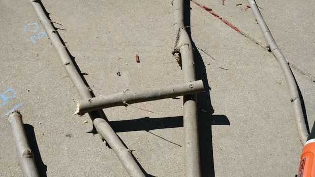13" pieza va en la parte superior, 30" pieza va en la parte inferior y el 18" pieza va en el medio para hacer una forma del triángulo.