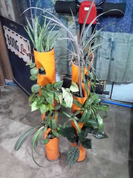 ¿Hola cómo estás?¿Te gusta la jardinería?sí, yo también. Pero, ¡ mira mi jardín! Tantos polibags aquí.Espontáneamente, tengo una idea para hacer un jardín vertical simplemente.Creo que no es que permanente, pero me ayuda a darle más espacio mi jardín