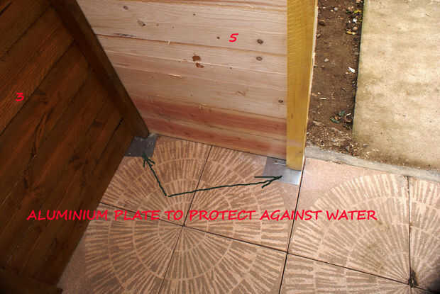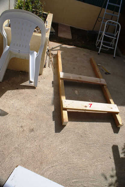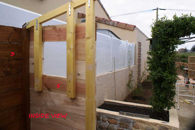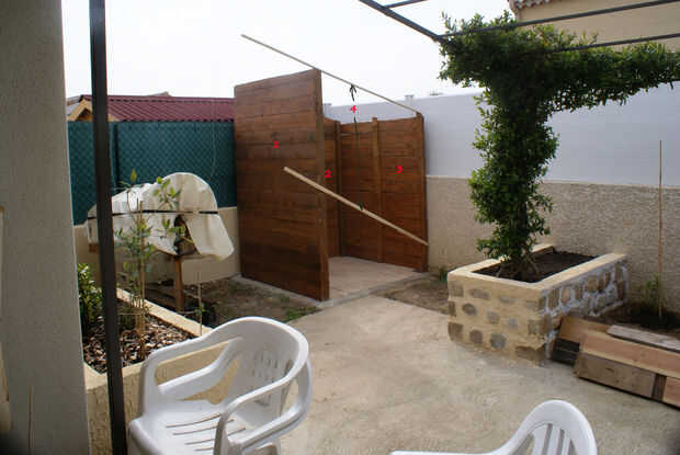 bild la parte posterior lateral (2) y los 2 laterales (1 y 3) en mi garaje. cuando tres paneles donde hecho, llevar lo en lugar y positionned tecnológico temporal con un barril de madera. (4)