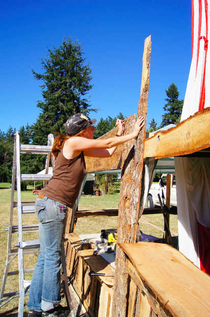 Después de tener un marco fuerte, empezar a cortar la madera losa a su longitud deseada y hacer paredes decorativas.