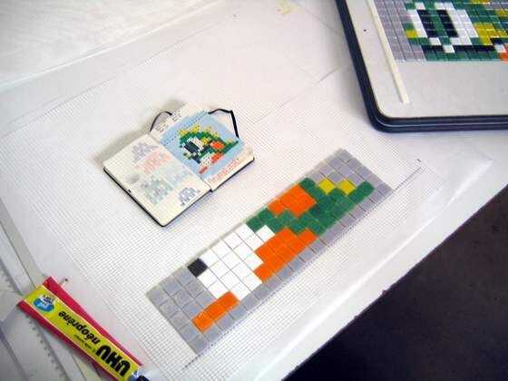 .. .y repetir 4 hasta que termine el mosaico! Se necesitan 12 horas + se seque por completo. Después de eso, los azulejos son muy muy bien fijos en la red. Todavía puede eliminar para corregir un error, pero no siempre es tan fácil.
