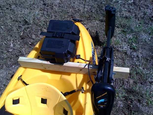 Es mejor que alguien mantenga el 2 x 4 en lugar mientras que Monte el motor de trolling a él. En este momento marqué el 2 x 4 at los bordes de la caja de la batería por lo que pude línea copia de seguridad más adelante.