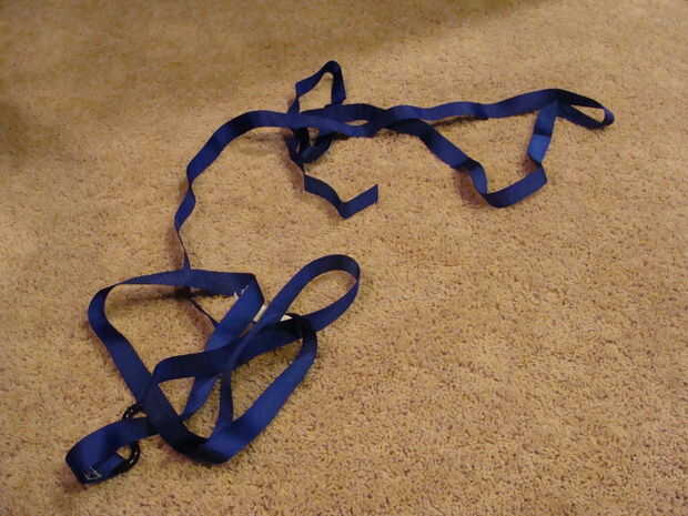 uso escalada / slacklining correas para coser usted mismo una cartera nueva!Paso 1: materiales Esto es lo que necesita:TijerasHilo de rosca(Ha y utilizan hilo de kevlar, disponible en slackline.com para $0,50 un carrete)~ 40 pulgadas de 1" espesor ci