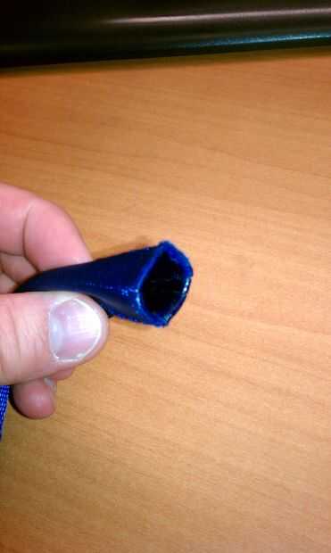 1. Corte el fleje como se mencionó anteriormente, en trozos de aprox. 2 pies. Si pellizque correa juntos vemos cómo este material es hueco. Una vez separadas, ligeramente chamuscar con encendedor para evitar más desgaste.