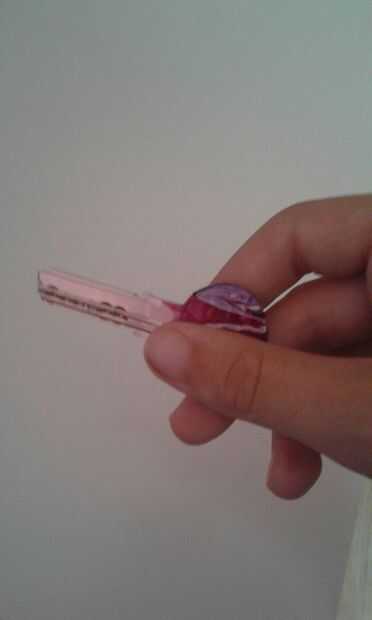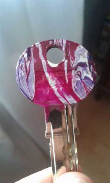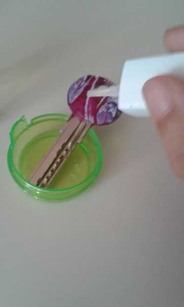 Con los palillos hacen el agujero de la llave. Luego con el pulimento de clavo claro pintar la tecla otra vez para proteger el diseño. Deje que se seque y ahora está listo para usar.