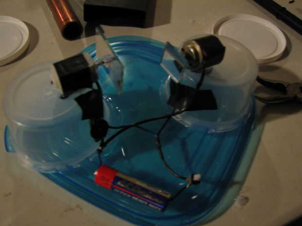 Mantener los motores en la plataforma con los espejos frente a unos de otros, ahora los giran en direcciones opuestas, cada uno de aproximadamente 5-10 grados.