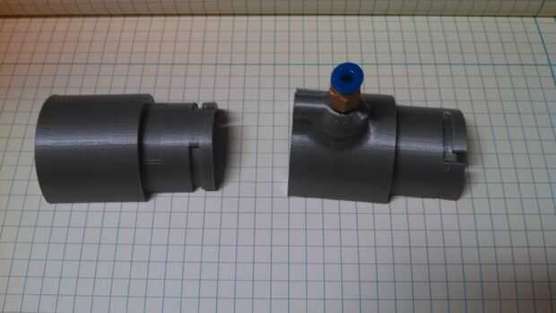 Entonces, después de limpiar la impresión como se indica en la página de Thingiverse, tornillo una guarnición de tubo en el orificio de la uno parte (sólo uno tiene un agujero) como se muestra en las fotos, esto es tamaño para usar los accesorios que vienen con el máximo de Rostock.