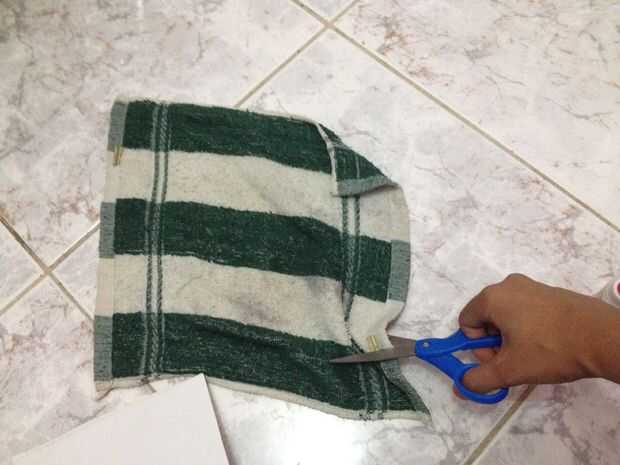 Cortar la toalla en cuatro filamentos.