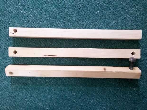 3) en un palillo largo de 1 pie, taladro en un extremo y otro agujero en el otro extremo pero en sentido diferente (ver fotos).