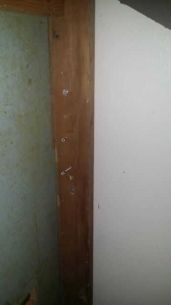 - Una vez que su marco de 2 x 4" se fija a la pared dar el paso extra y clavo al suelo de apoyo