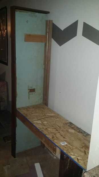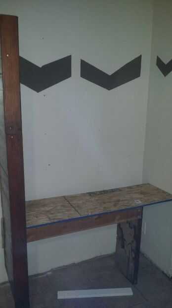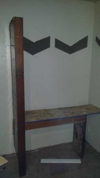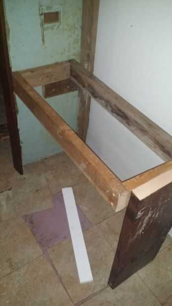 - Para el otro lado de la base de la plataforma he utilizado algunos madera vieja que mentía alrededor y cortarlo 26 7/8" y atornillado a la parte de la base de la repisa con tornillos para madera