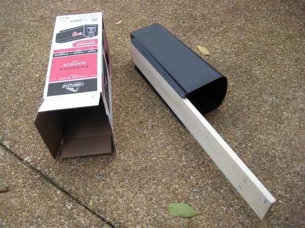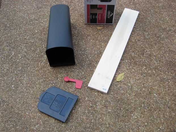 La parte más estrecha de la tolva de la hoja es de 8 "x 8" amplia por lo que he ojeado mi almacén de hardware local caja grande para algo que era de 7 "x 7" o 8 "x 8" ancho, pero esperemos que un poco largo y aún más que, resistente y ligero. Finalmente tropezó en el pasillo de buzón y encontrar este buzón $11 que está hecho de plástico resistente de polipropileno. Su parte más ancha es 8 "x 8" y ligeramente cónica hacia la parte posterior. También recogí un 36" de largo, 5.5" tablón de álamo amplia para usar como un mango.