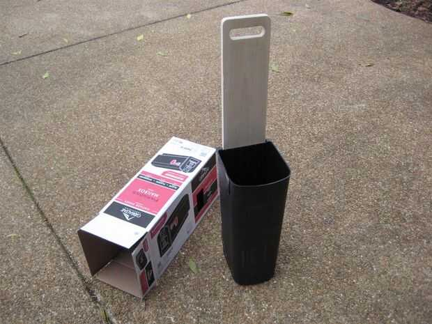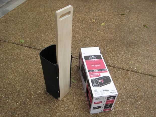 Corte una forma de manija con una sierra caladora de 1 pulgadas de un extremo de la tabla y lija los bordes. Luego perforar cuatro agujeros guía a través de los lados de la tabla y atornillar el buzón a la tabla con tornillos gruesos.