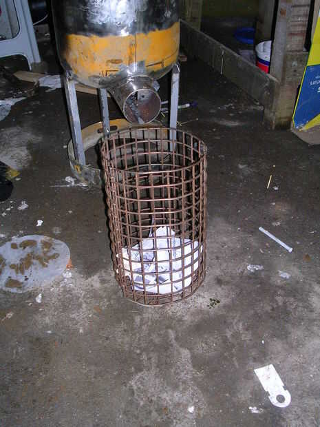Usé algunos izquierda sobre soldadura mes a hacer una canasta que el interior del tanque sin tocar para revestimiento de cemento