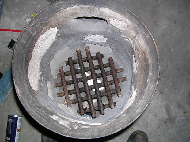 La parrilla fue hecha de varias longitudes de barras de refuerzo soldadas con autógena juntas en un enrejado, después de 2 años todavía muestra ahora signos de quema.