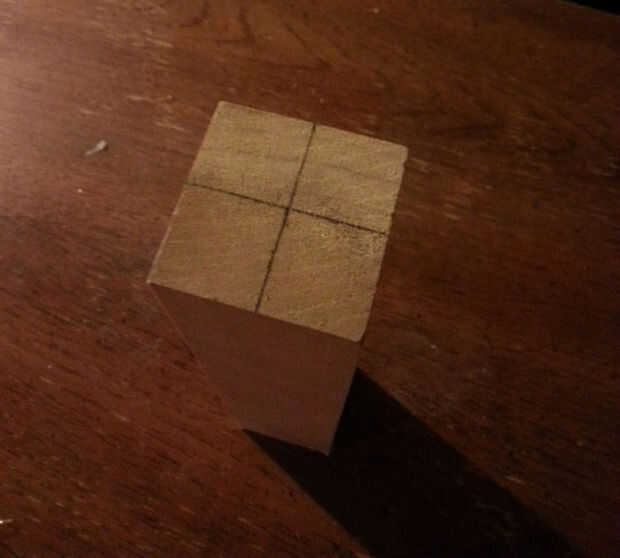 Con los extremos de la Plaza de la madera, marcar el centro en los dos extremos de la madera con un lápiz y escuadra de combinación.