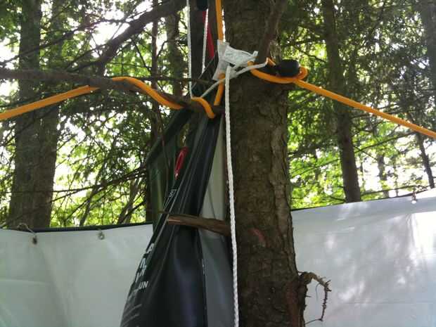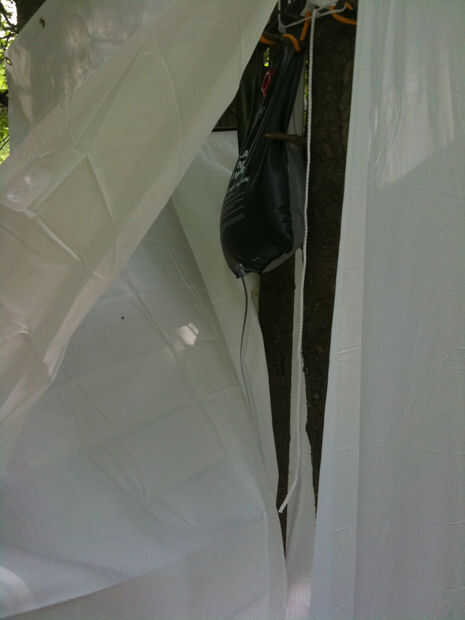Esta configuración sobrevivió una masiva tormenta de lluvia/trueno/relámpago perfectamente. Todos excepto las pinzas para la ropa, uno de los cuales voló.
