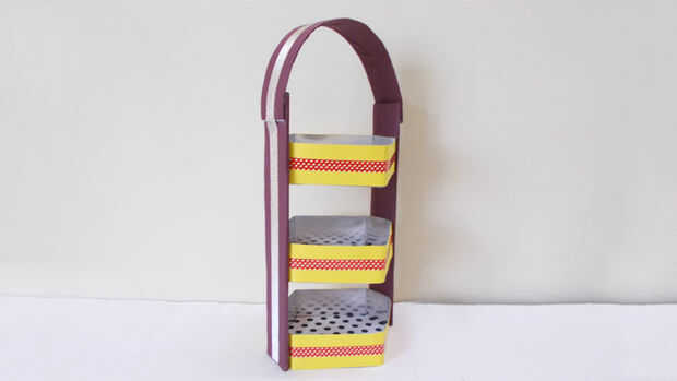 Añadir un toque decorativo al organizador por pegar una cinta decorativa en las paredes, lados y mangos de las cajas.
