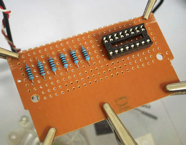 Organizar las resistencias. Poner los sockets de 16 pines IC. (es opcional, que sólo puede soldar el DIP switch sin los zócalos) (ver imagen 1)