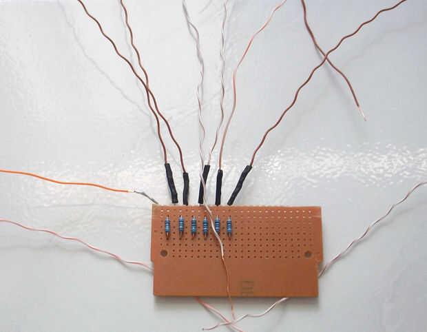 Todo el alambre del cátodo (-) del LED con resistencias de la soldadura. Usando la tubería del encogimiento es esencial para evitar un cortocircuito. (ver imagen 1)