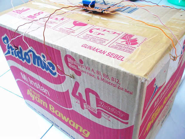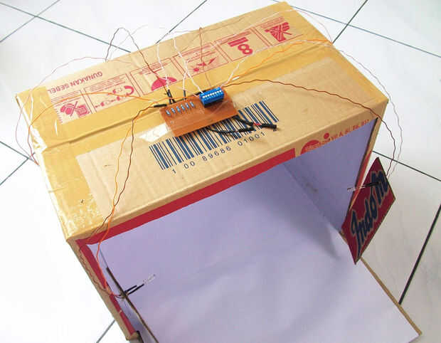 Hacer un agujero en la caja. Asegúrese de que los LEDs pueden fácilmente hacia adentro y hacia afuera.