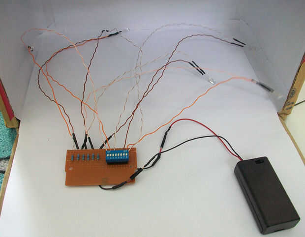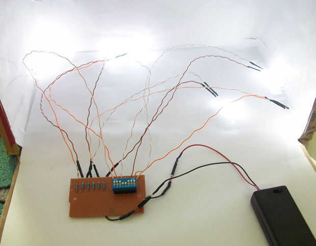 Poner el circuito en la caja. Dibujar la posición de LED con marcador. (ver imagen 3)