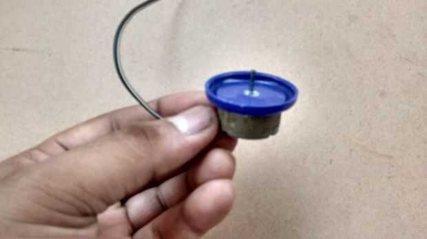 el siguiente paso es poner el motor en la tapa del envase plástico como se muestra en la imagen de arriba...
