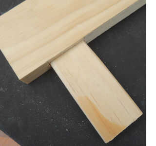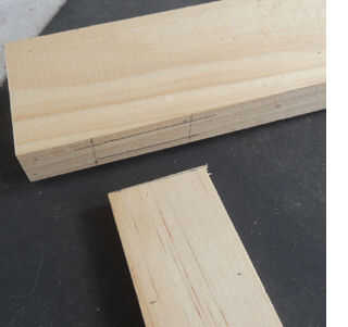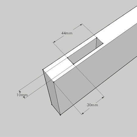 5. de 10 x 44 pino PAR m usé una lijadora para redondear las esquinas. Cortar el pino PAR de 10 x 44mm a 80mm de longitud. Esto permite 30mm montados en las tablas superiores e inferiores y 20mm en la brecha.