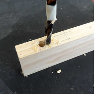 2. la espiga utilizada para la demostración era una tira de 10 x 44 mm de pino PAR. Para acomodar esto necesita utilizar una broca de madera de 10mm. Aunque he marcado de la broca de 50 mm., una profundidad de 30mm debe ser más que suficiente.