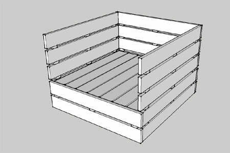 9. para los listones del asiento de montaje, añadir listones de 32 x 32 mm a 20 mm por debajo de la parte superior del segundo listón - en el frente, parte posterior y lados.