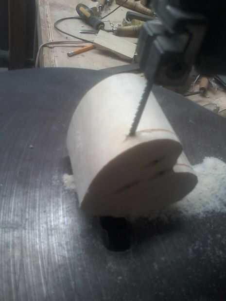 en este paso cortar dos rodajas de madera de su interior bloque.